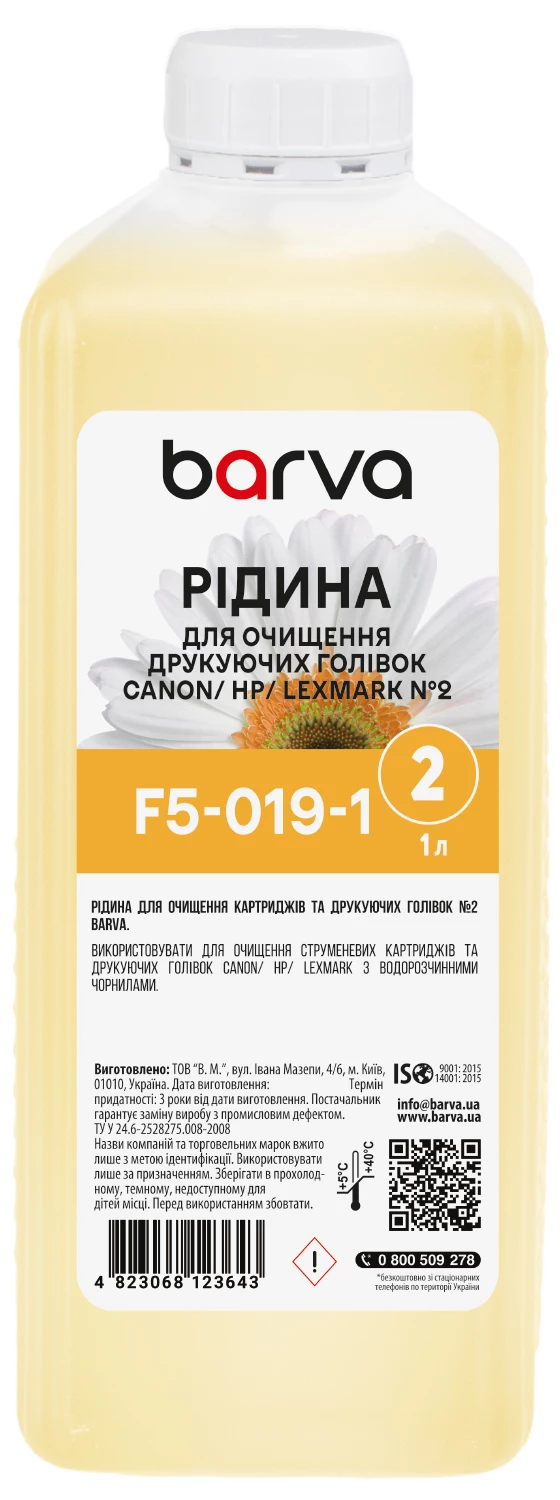 Жидкость для промывки печатающих головок Canon/HP/Lexmark №2 с водорастворимыми чернилами 1 л Barva (F5-019-1)